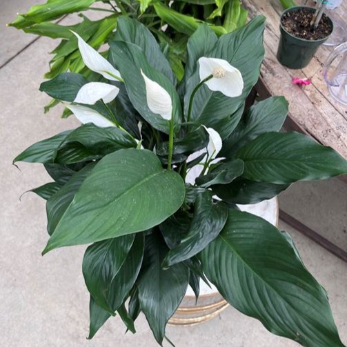 When grown indoors, Peace Lily can be expected to grow to be about 30 inches tall at maturity, with a spread of 30 inches. It grows at a medium rate, and under ideal conditions can be expected to live for approximately 10 years. This houseplant performs well in both bright or indirect sunlight and strong artificial light, and can therefore be situated in almost any well-lit room or location. It prefers to grow in average to moist soil. The surface of the soil shouldn't be allowed to dry out completely, and so you should expect to water this plant once and possibly even twice each week. Be aware that your particular watering schedule may vary depending on its location in the room, the pot size, plant size and other conditions; if in doubt, ask one of our experts in the store for advice. It is particular about its soil conditions, with a strong preference for rich, acidic soil. Contact the store for specific recommendations on pre-mixed potting soil for this plant. Be warned that parts of this plant are known to be toxic to humans and animals, so special care should be exercised if growing it around children and pets.